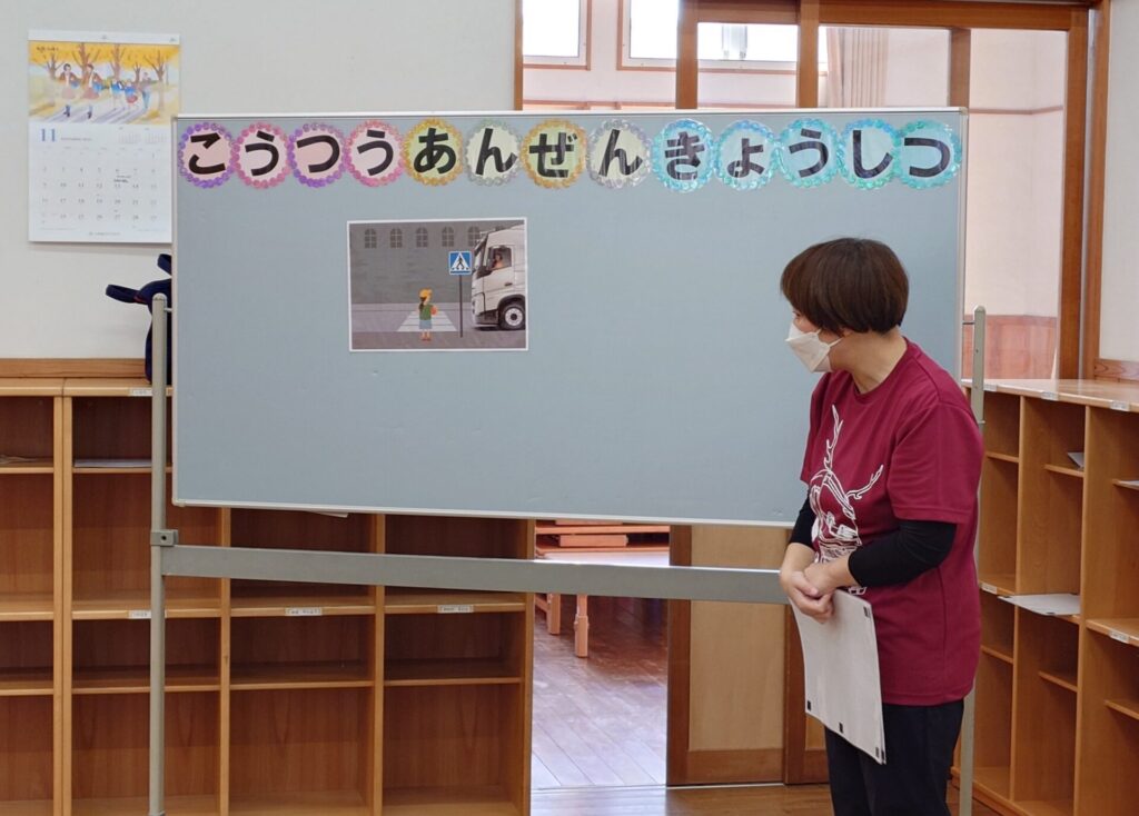 少し前になりますが、11月27日に潮来市にある「日の出こども園」様にご協力いただき、交通安全教室を開催させていただきました。
